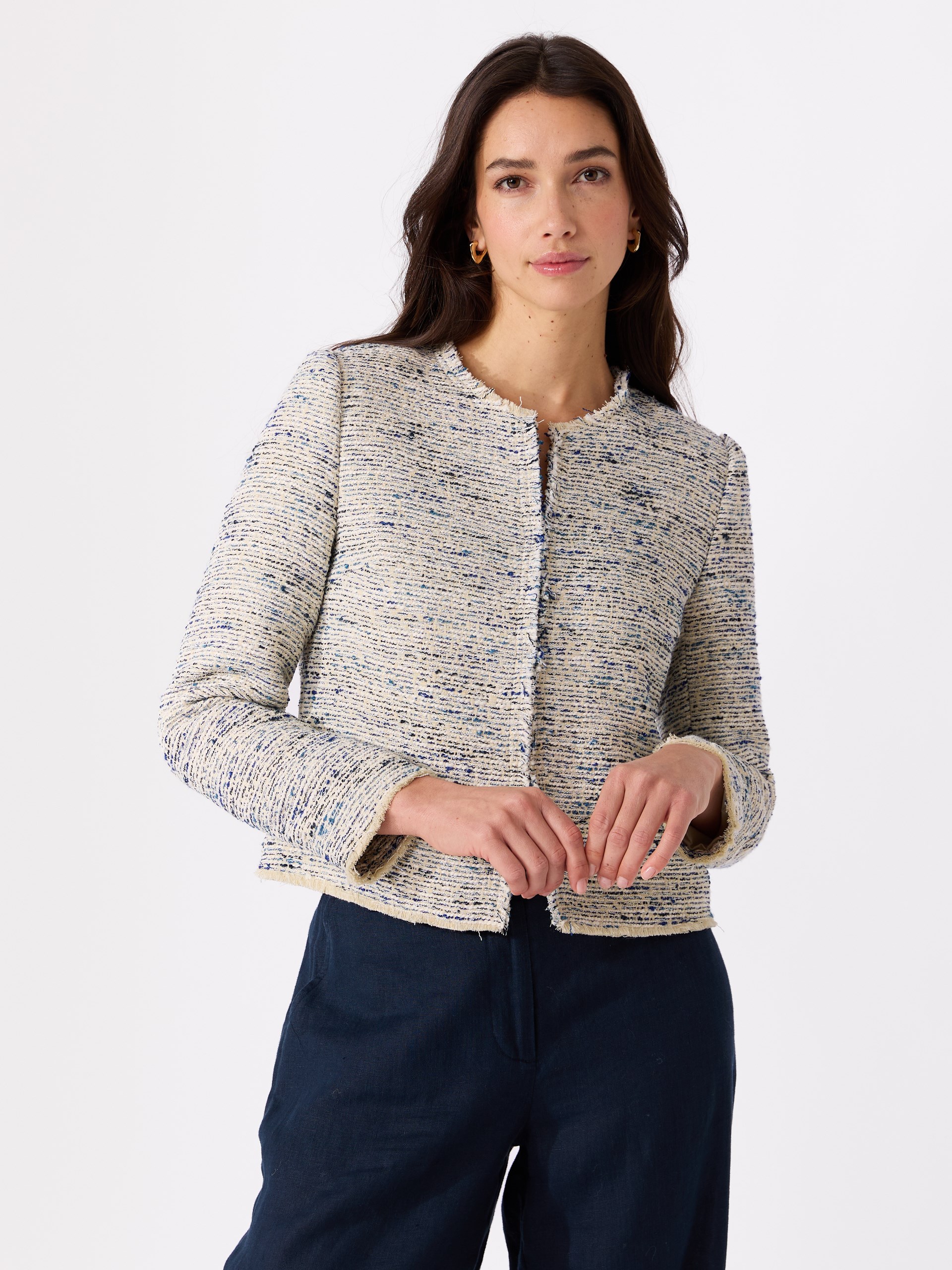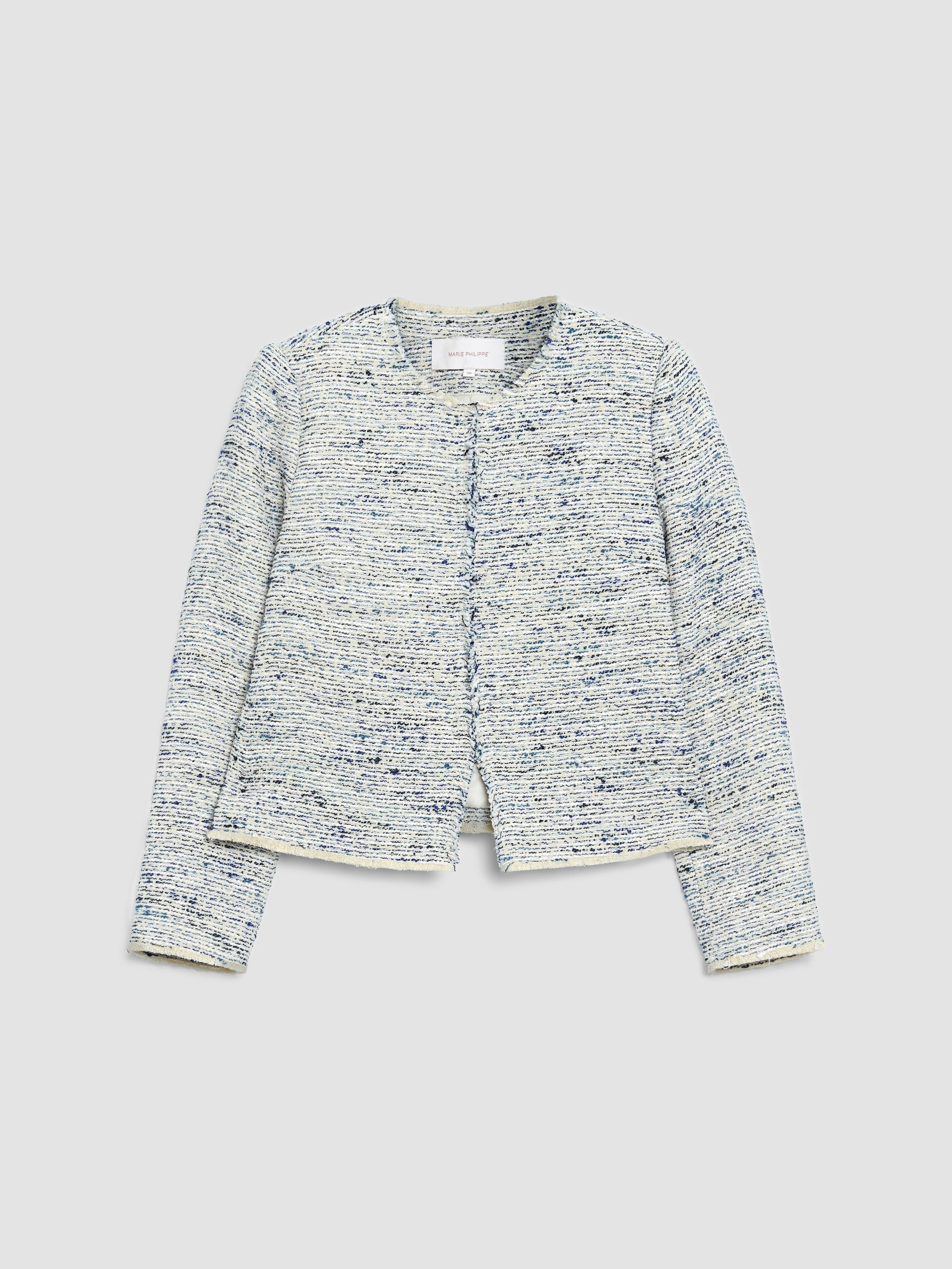 Jakke i vevet bouclè kvalitet med stripestruktur
