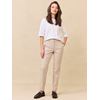 Klassisk chinos i myk bomullsblanding med god stretch. Buksen har god livhøyde, linning med beltestropper, hekte og glidelås samt en liten sølvfarget logbadge på venstre side. Lite ton i ton broderi i livet bak. Feminin passform med ben som smalner litt nederst. Modellen er 167 cm høy og har på seg str S.