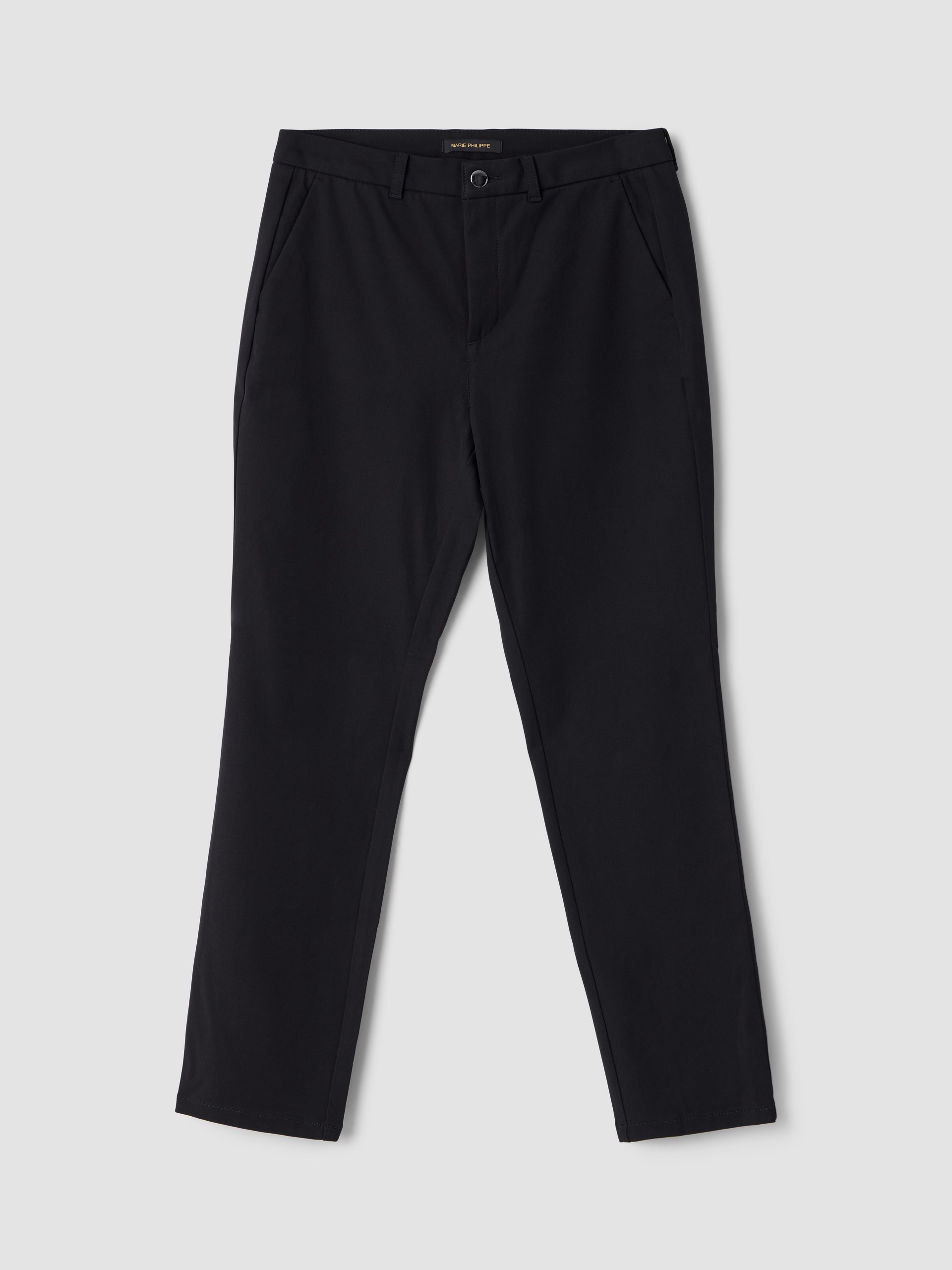 Chinos i behagelig stretchkvalitet. Buksen har stikklommer i front og passepoilerte fuskelommer bak. Normal livhøyde og rette ben. Lukkes med sølvfarget knapp og glidelås i front.