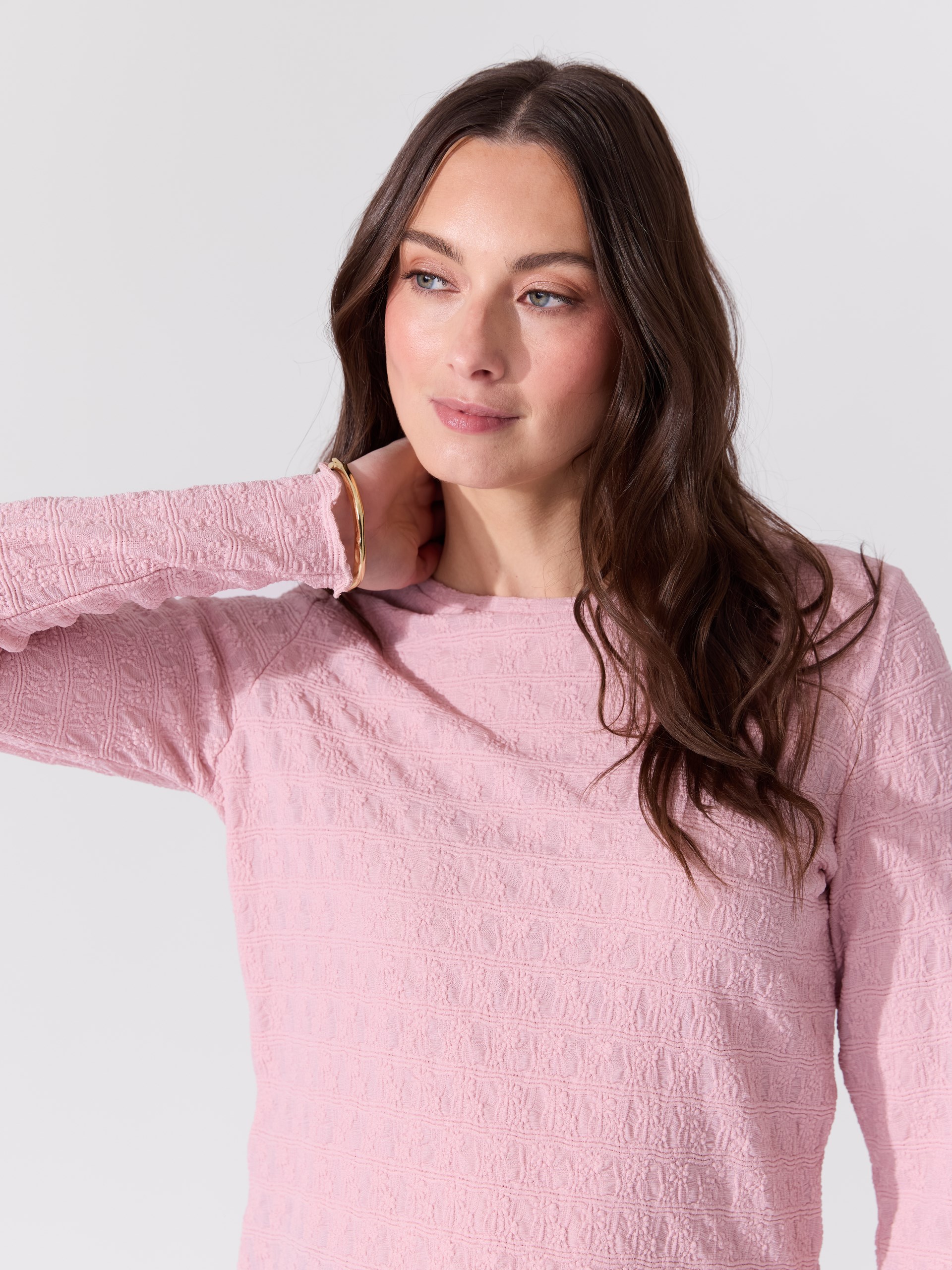 Delikat genser med feminint strukturmønster