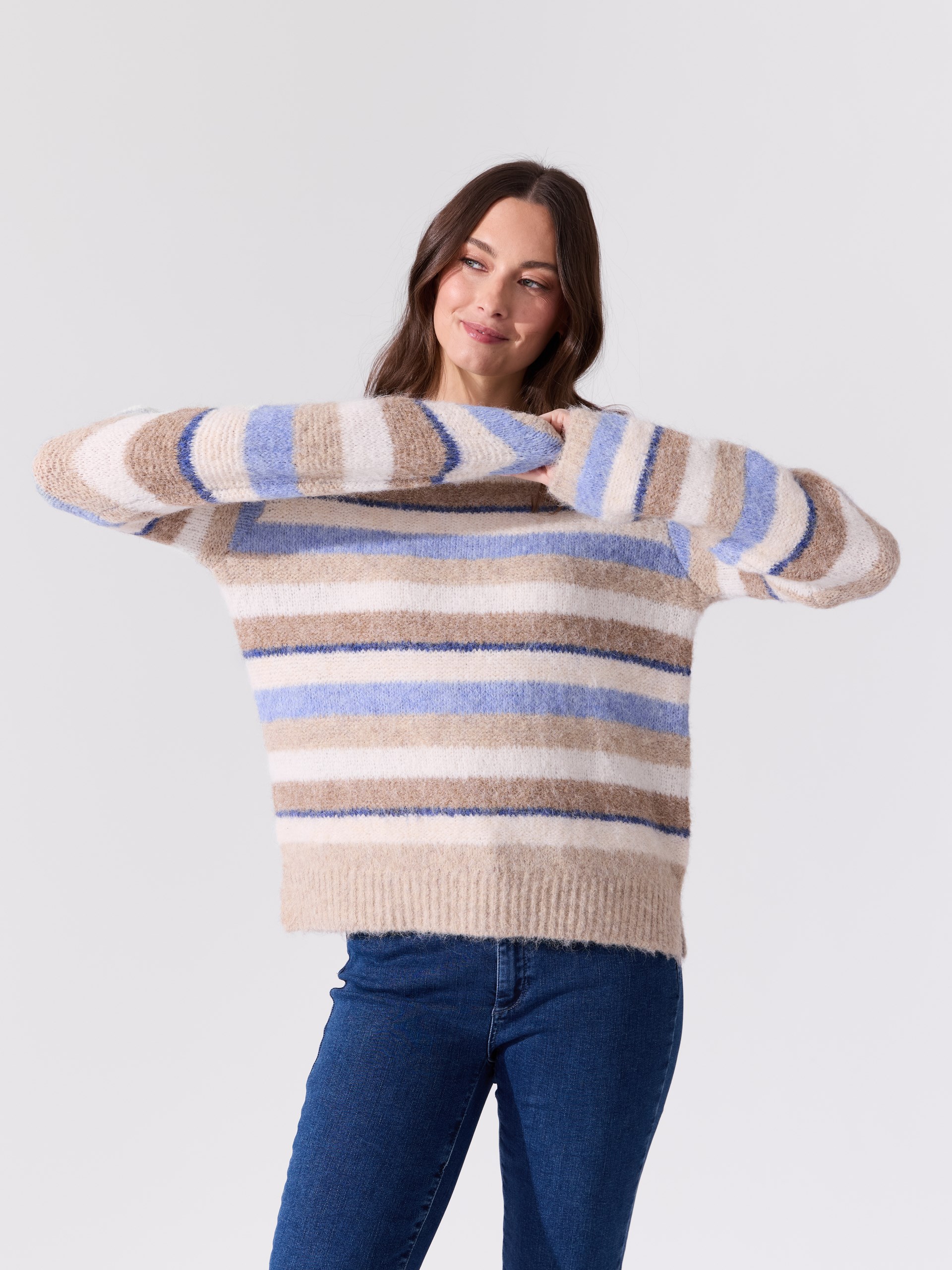 Stripet strikkegenser i myk kvalitet
