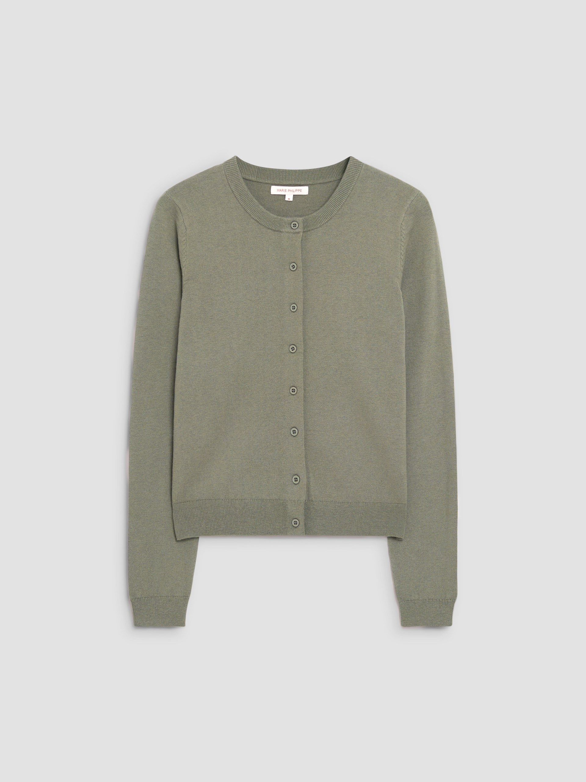 Finstrikket cardigan i myk ull og bomullsblanding.