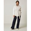 Tidsriktig quiltet vest med lett vattering og rett passform med løst knytebelte i livet. Vesten har krage, glidelåslukning og skjulte trykknapper i front, vertikale lommer og ermåpning med fine sømdetaljer. Buet avslutning i kanten nede og en liten logobadge i metall på siden. Modellen er 173 cm høy og bruker str S.