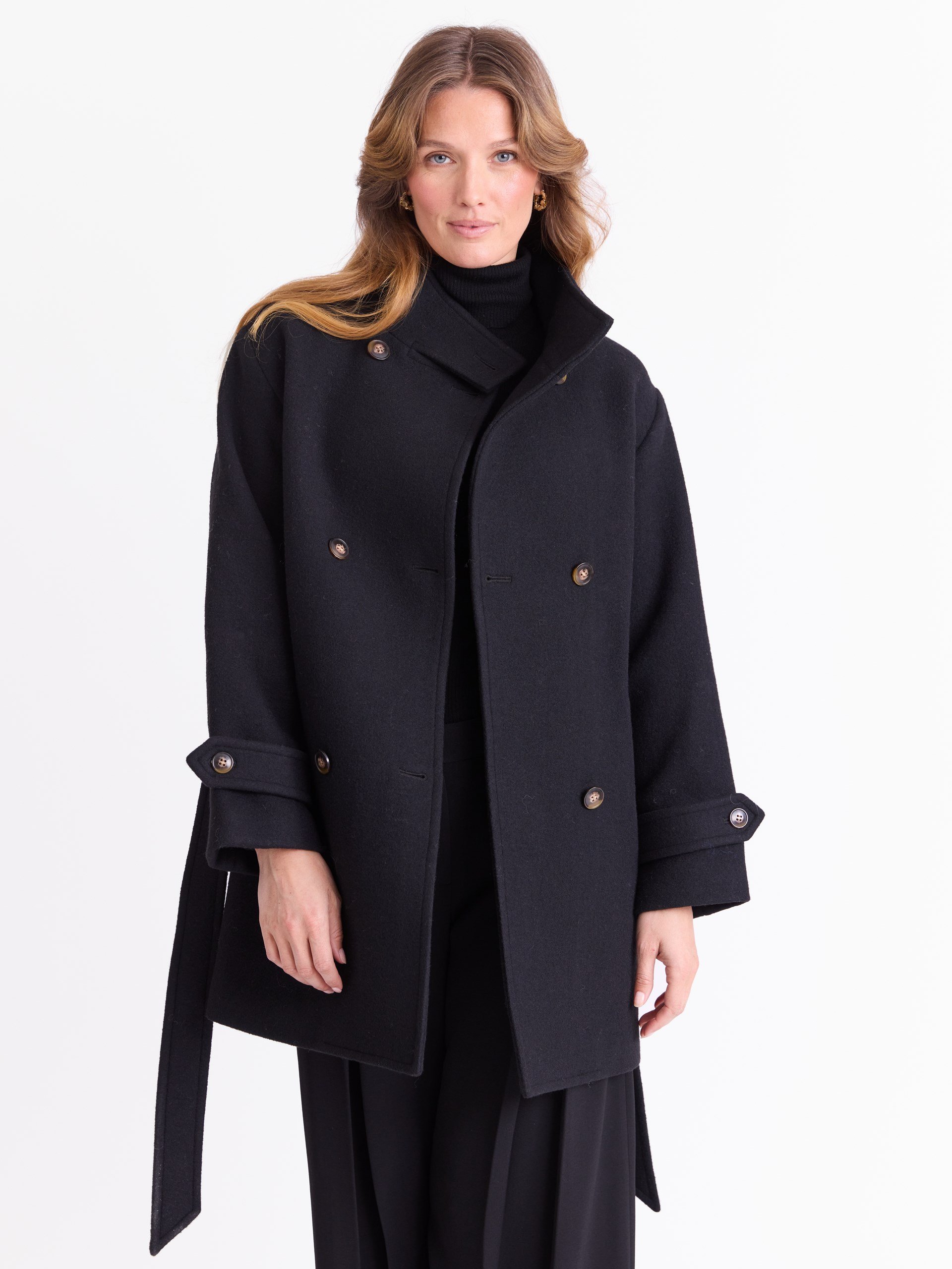 Dobbelspent kåpe i ullblanding. NB. farge GOY avviker litt fra bildet. Kåpen er mørk grønn.
