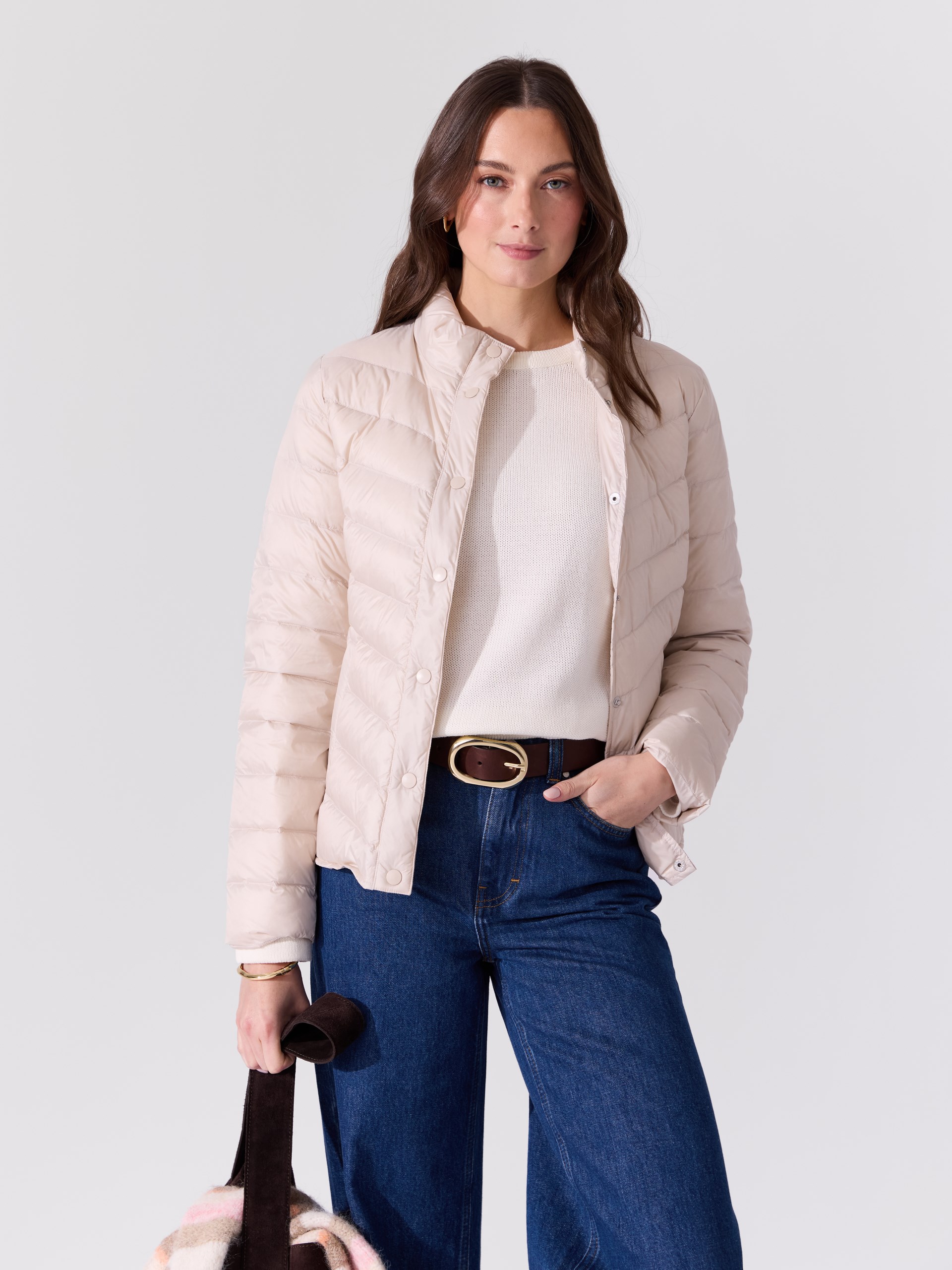 Feminin lett dunjakke i 80% dun og 20% fjær