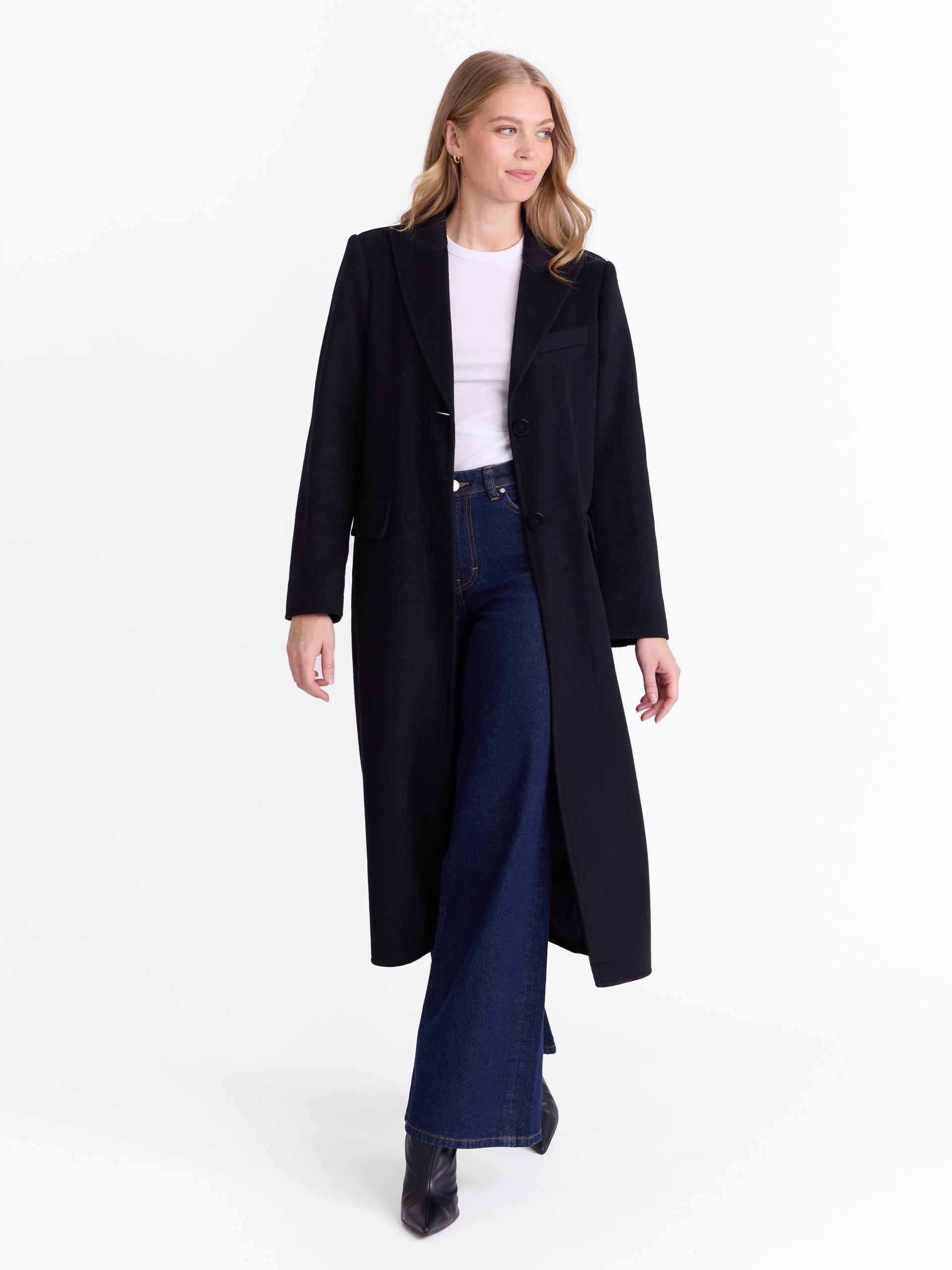 Lang kåpe i delikat ullblanding.