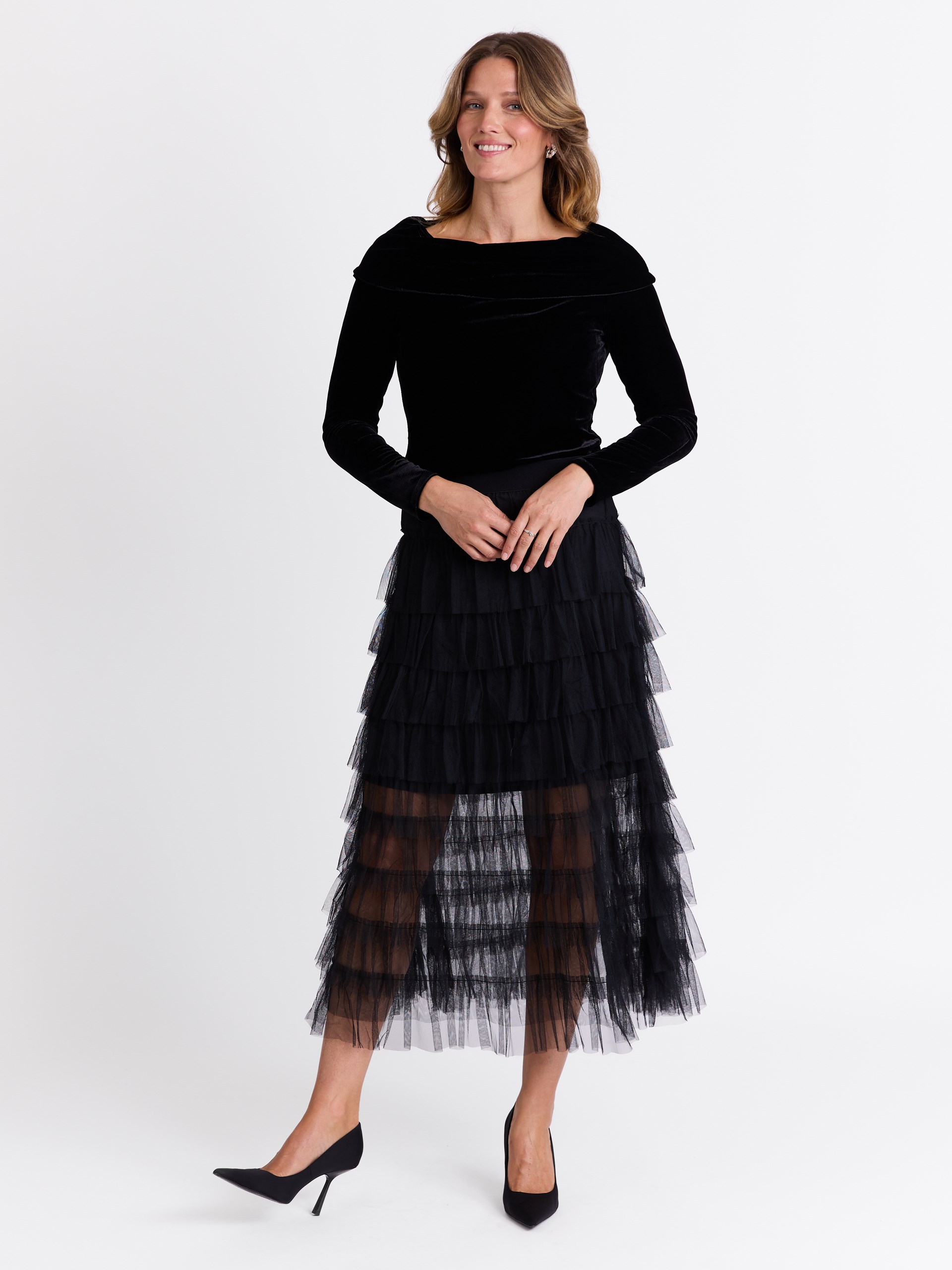 Langt tyllskjørt med kapper