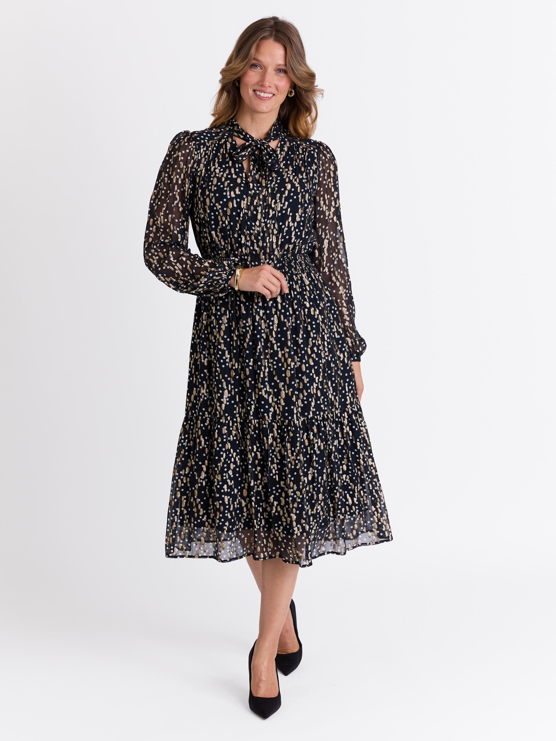 Kjole i lett viskosekvalitet med delikat mønster med lurex.