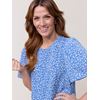 Småblomstret kjole i lett kvalitet med rund hals som lukkes med knapp og splitt bak. Kjolen har pufferm med vidde, ledig passform og kappe i kanten nederst.