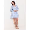 Kjole i delikat mønstret engelsk blonde med innvendig fôr og utringing med snøring. Kjolen har lang erm med en liten puff og elastikk nederst, utskrådd skjørt med kapper og lengde til ovenfor kneet.