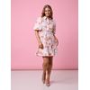 Feminin skjortekjole i sommerlig print med ton i ton knapper, krage og korte ballongermer med fôr. Kjolen har ett vevet knytebelte i livet, og skjørt med innsydde spiler for god vidde.