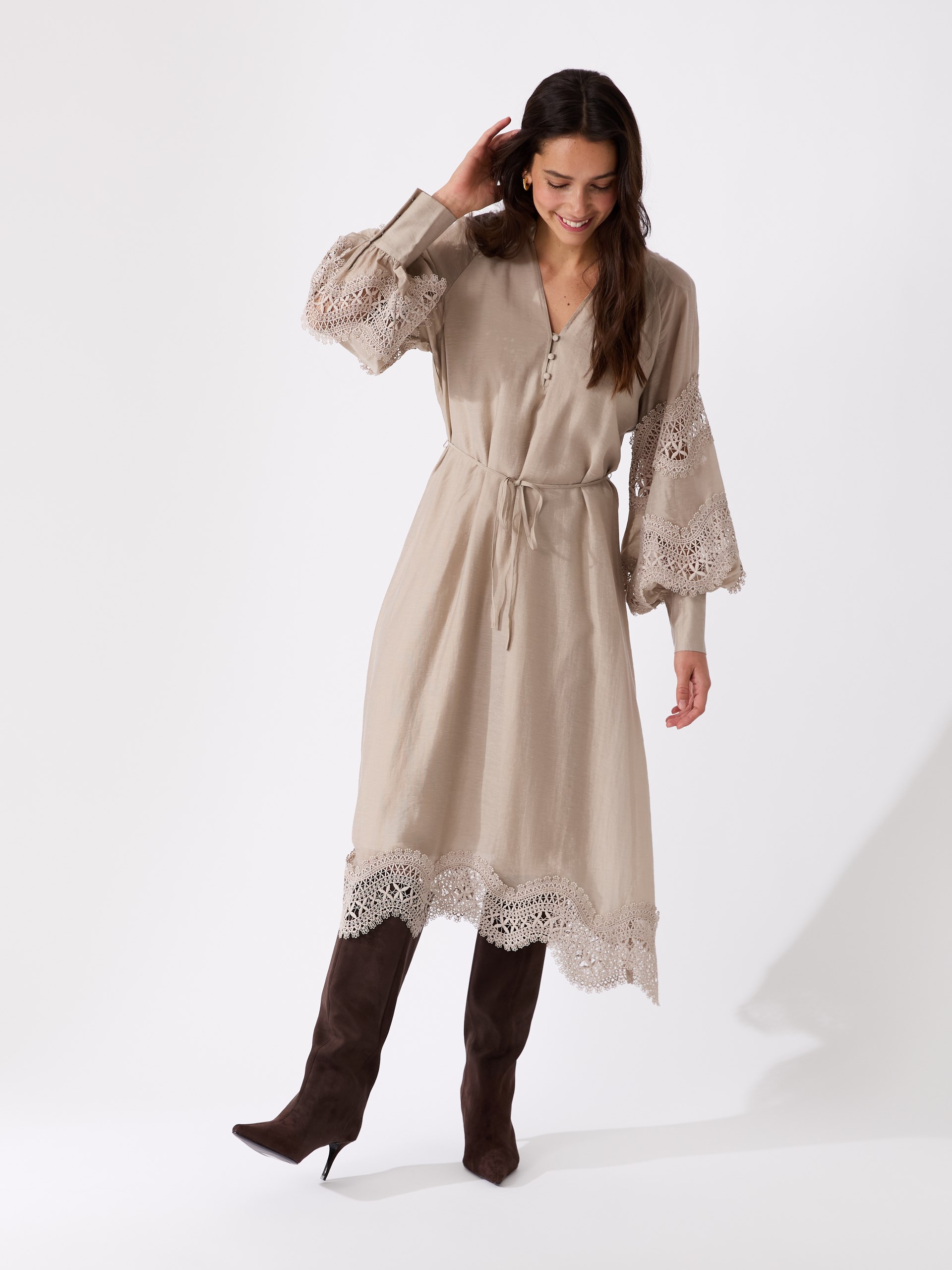 Delikat kjole i viskoseblanding med generøs blondebesetning.