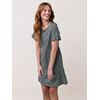 Kjole i myk og lett jersey kvaliet i ren bomull. Kjolen har kort pufferm med liten volangkant, kappeskjørt og lengde ca til kneet. Kjolen er 93 cm lang i størrelse 38.