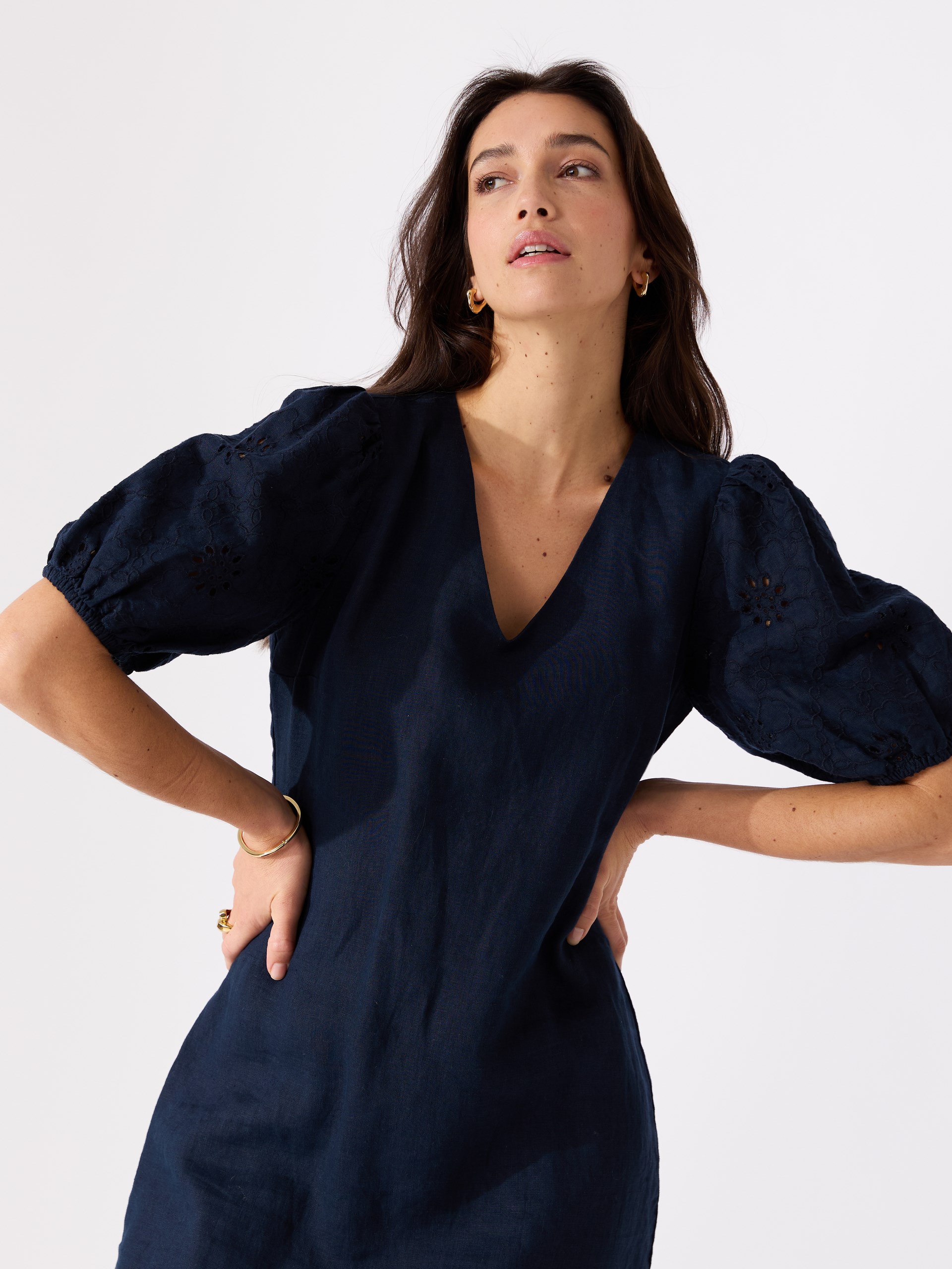 - kort pufferm i brodert lin