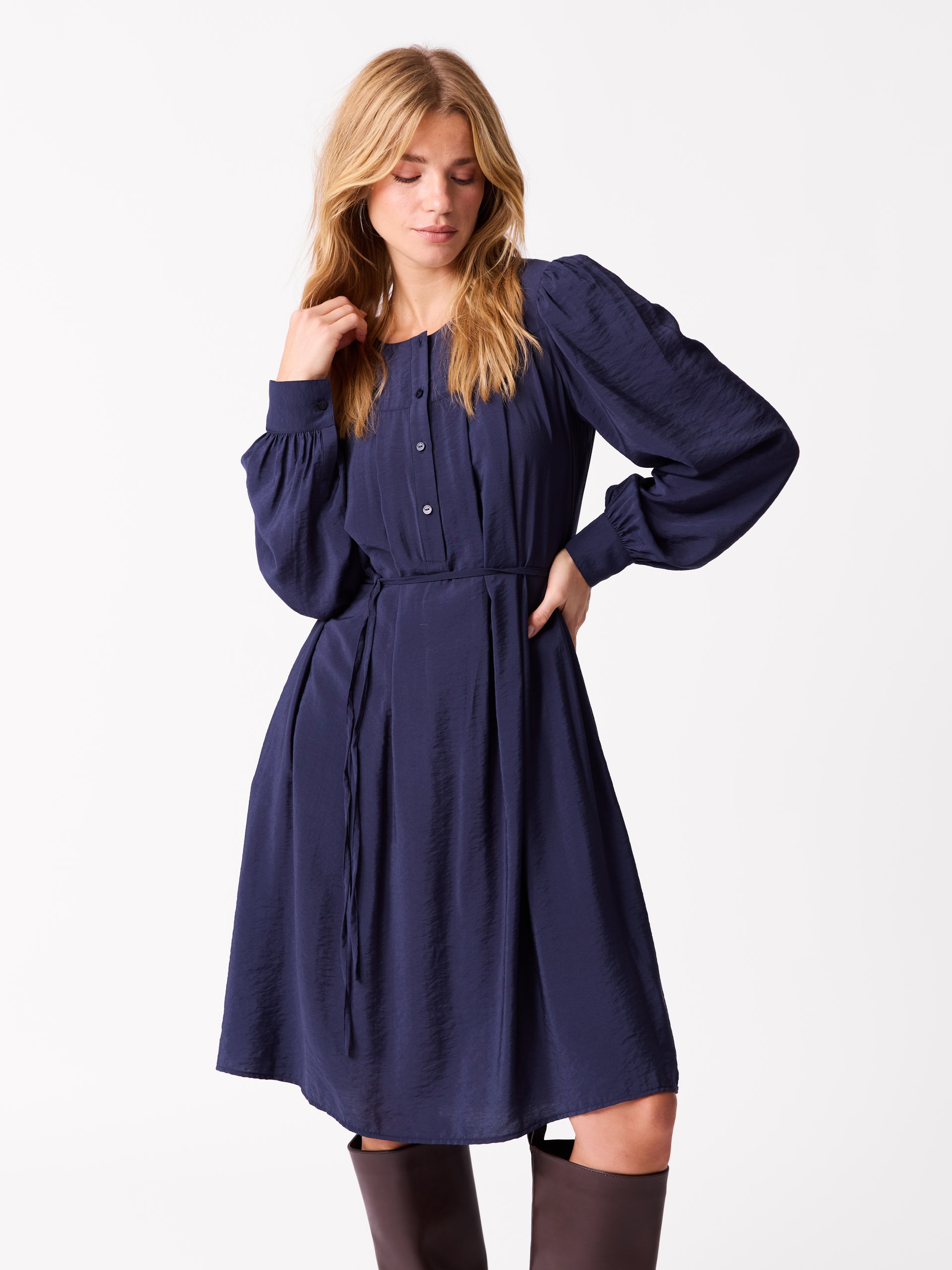 Avslappet kjole i lett krinklet viskose med nylon