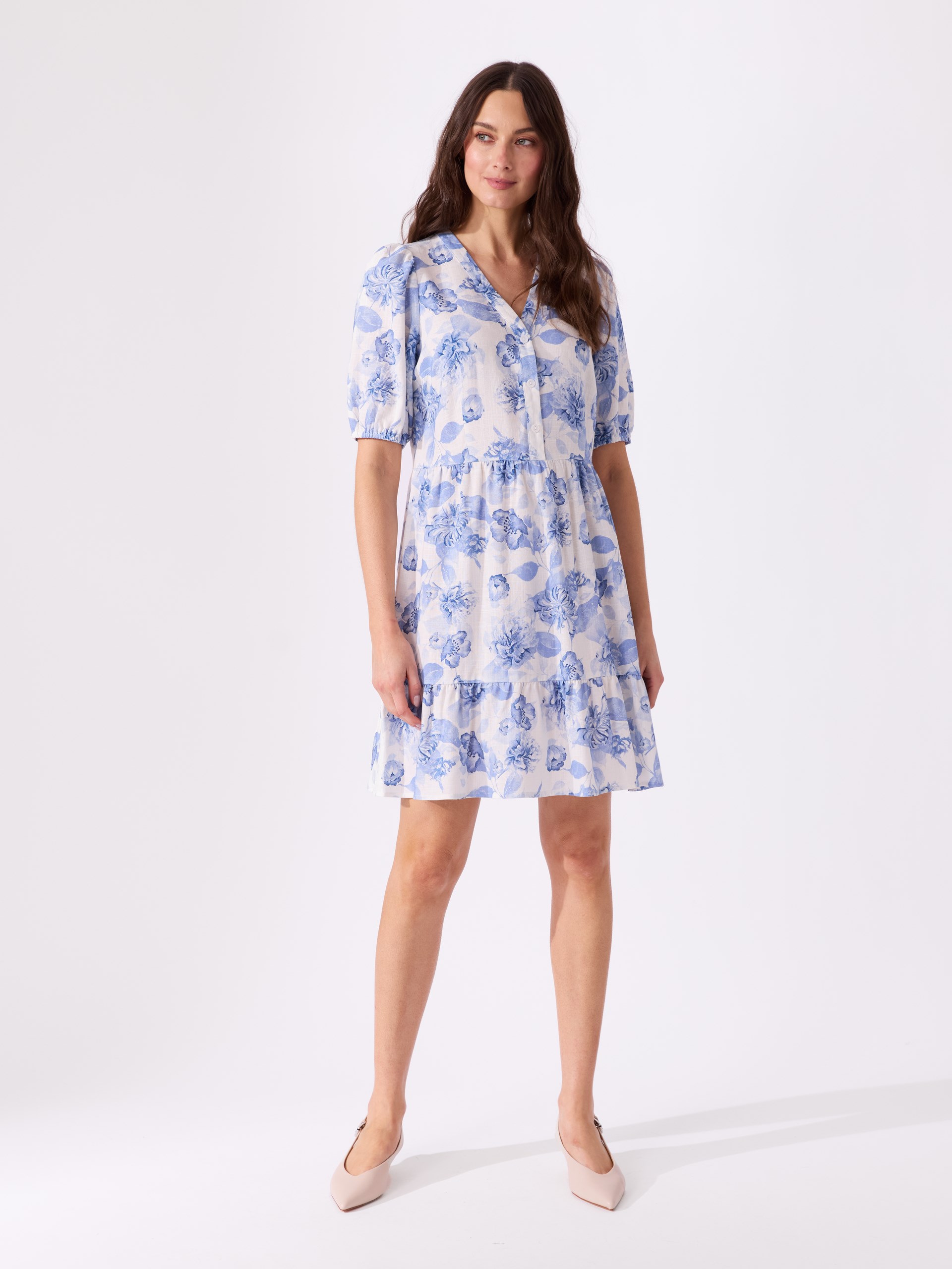 Kjole i behagelig kvalitet av viskose med lin. Kjolen kommer i ensfarget og mønstret variant