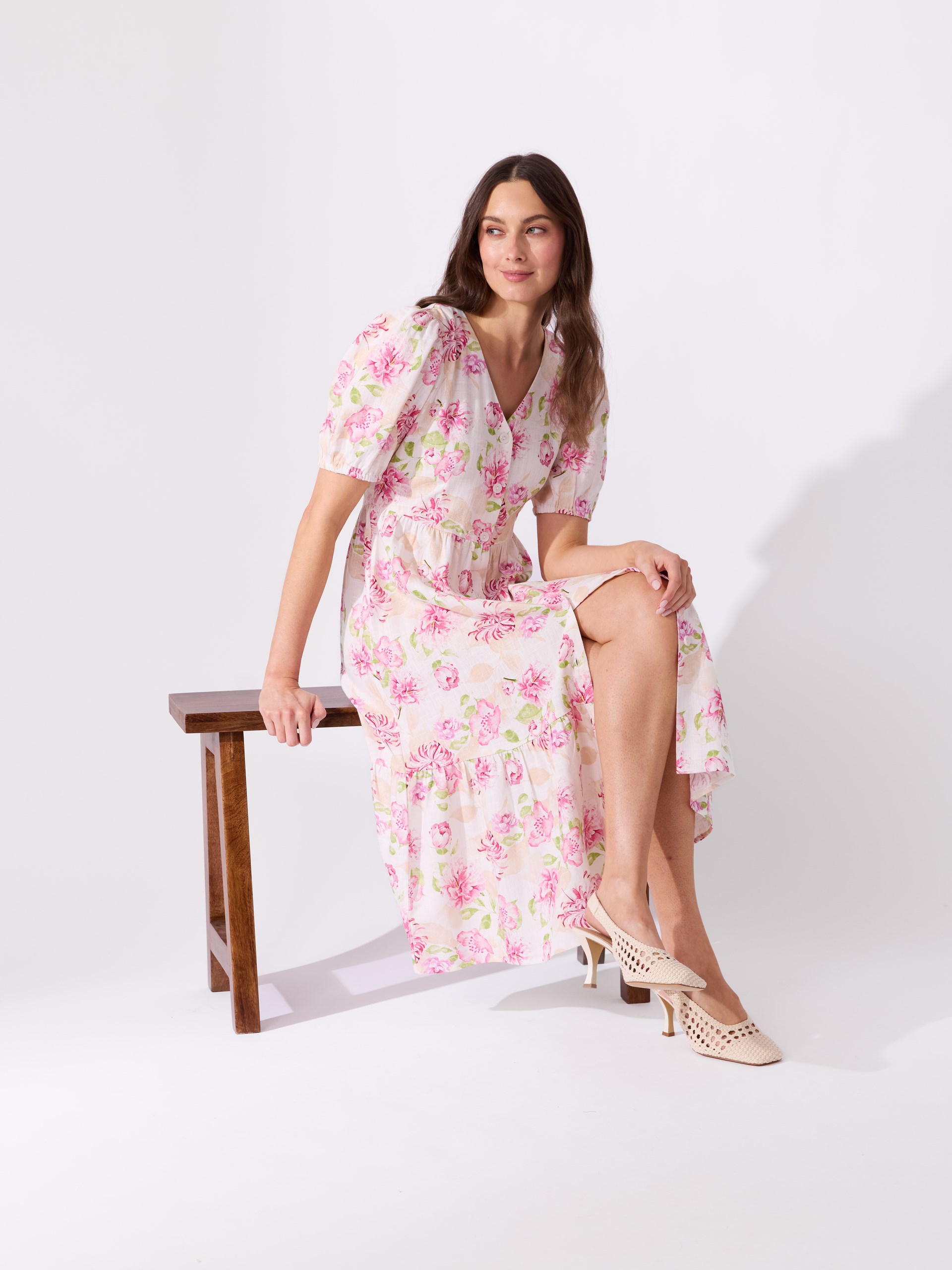 Lang kjole i behagelig strukturert kvalitet av viskose og lin