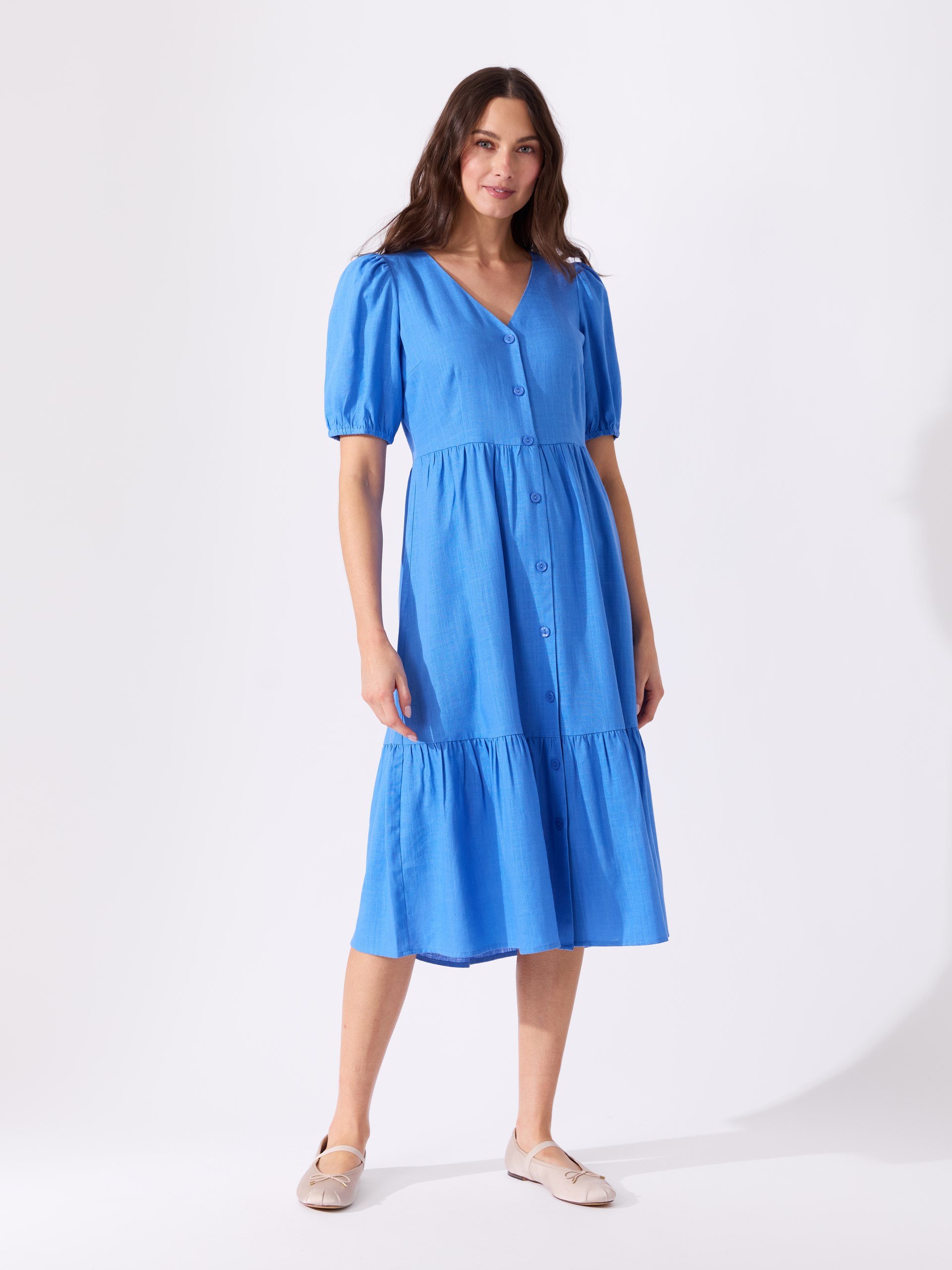 Lang kjole i behagelig strukturert kvalitet av viskose og lin
