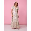 Maxikjole i jaquardvevet viskose med metalleffekt og innvendig lett fôr. Kjolen har v utringing, høyt skåret liv med drapering i front, skjult glidelås i ryggen og langt skjørt med kappe nederst. Korte puffermer med volum og elastikk nede. NB! Gul variant er online exclusive.