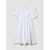 Kort kjole i delikat jaquardvevet viskose med v utringing og glidelås i ryggen. Kjolen er foret, har høy livskjæring, små rynker under bysten, utskrådd skjørt og volumiøse korte puffermer med fôr.