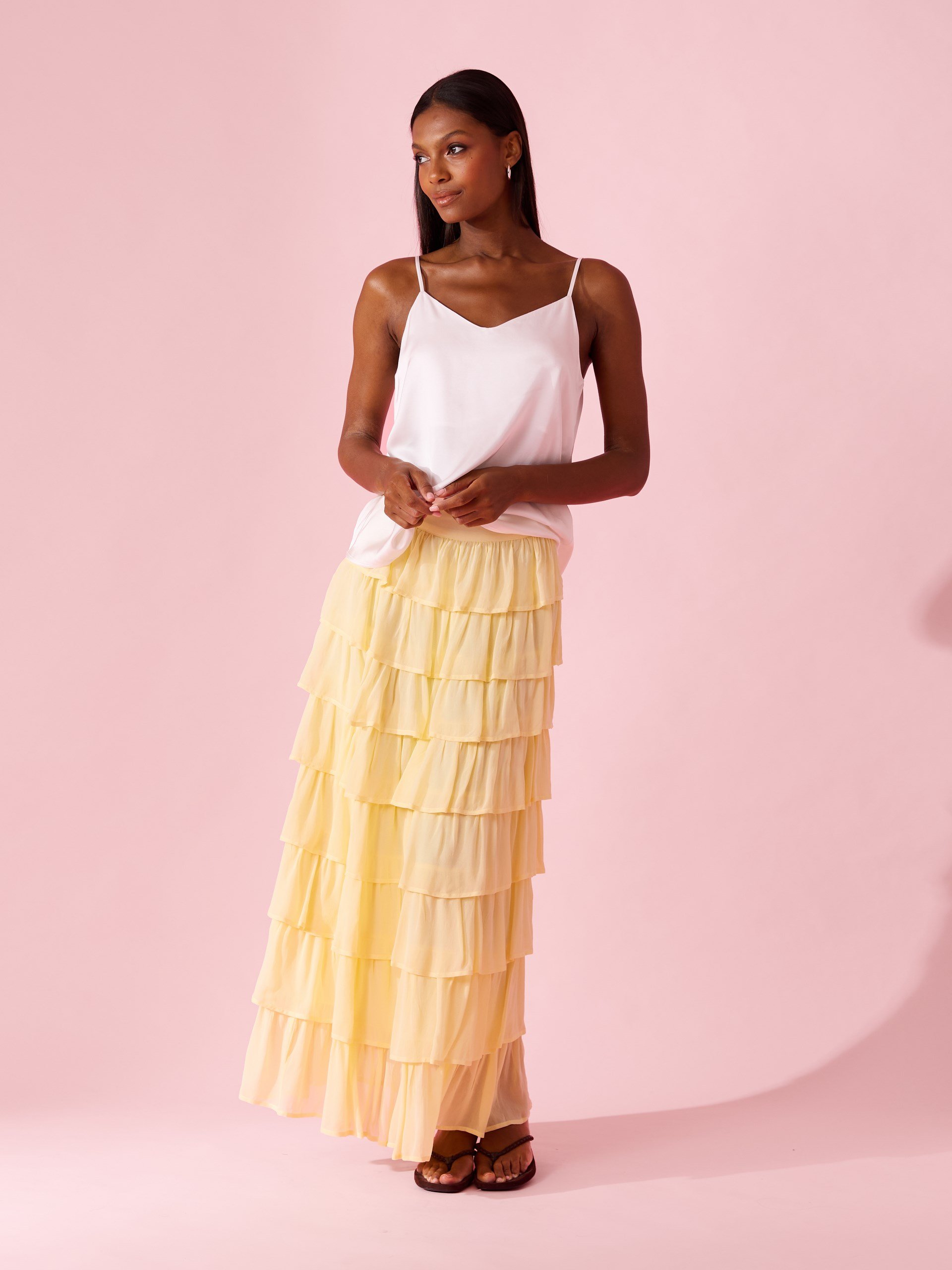Langt kappeskjørt i lett viskose med feminint blomstermønster
