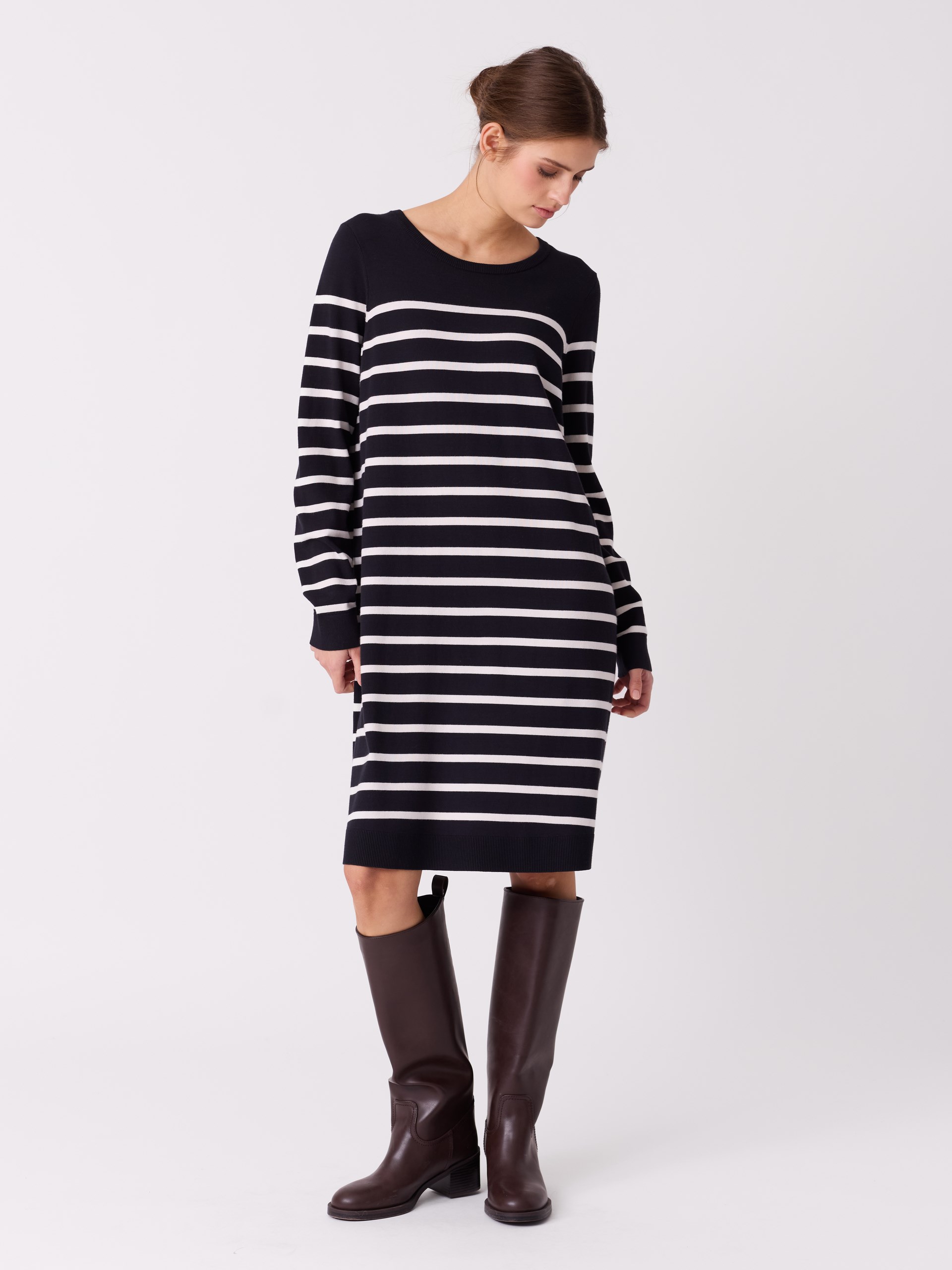 Stripet kjole i finstrikket viskoseblanding