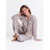 • Pysjamasjakken har rundet krage, ton i ton knepping i front, brystlomme og smale kontrastbånd