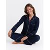 - Pysjamasjakken har rundet krage, ton i ton knepping i front, brystlomme og smale kontrastbånd