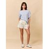 Gizelle er en sommerlig shorts i myk plagg-innfarget bomullsateng med stretch. Vaskeprosessen gir shortsen et unikt utseende. Den har glidelåsgylf med knapp i livet, legg i front og en passepoilert baklomme.