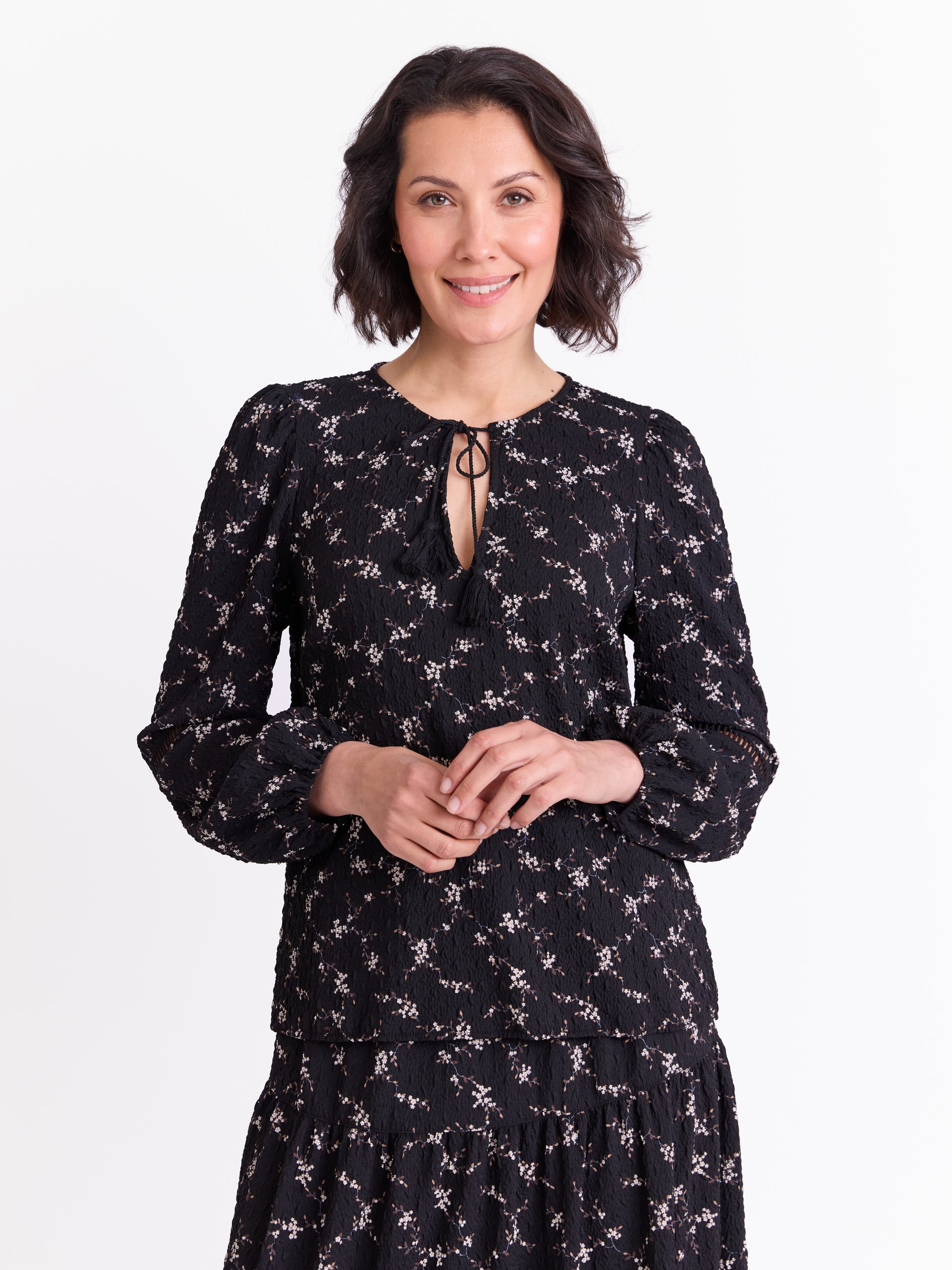 • Blusen har lang vid erm med ett smalt dekorbånd