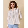 Skjorte i bomull med stripestruktur og skjult frontknepping. Skjorten har snøring og en elegant krage, lang erm med vidde og høy mansjett, fold i nakken bak og buet avslutning med lenger bakstykke. Lett oversized passform.