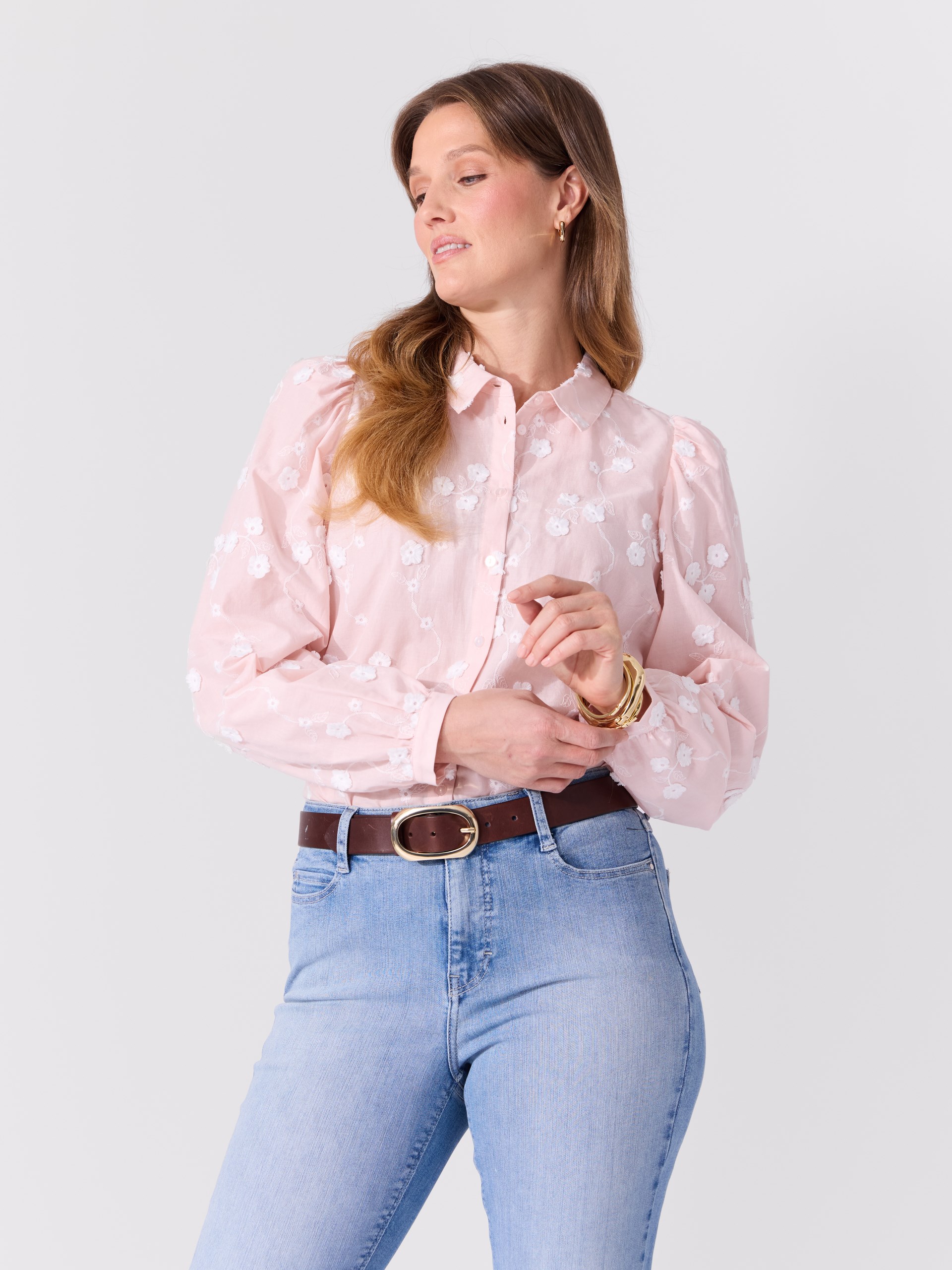 Feminin skjorte med 3D broderi