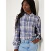Delikat rutet skjorte i lett bomull med feminin rysjekant i halsåpningen og knappestolpe med lyse knapper i front. Skjorten har lang erm med liten puff og knappet mansjett, rett passform og liten logobadge i metall nede på siden.