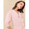 Bluse i lett kreppet bomull med v hals og puffermer med elastikk. Blusen har rett passform og knytelukning i front. Liten logobadge i metall nede på siden.