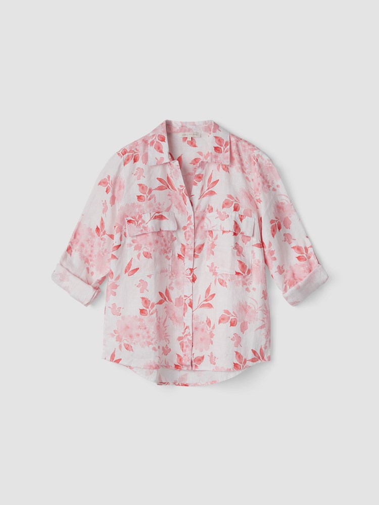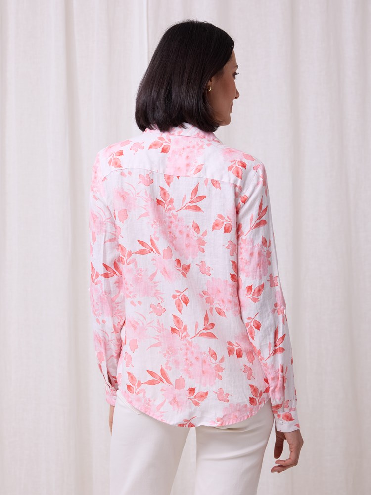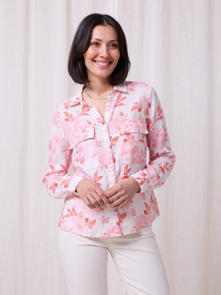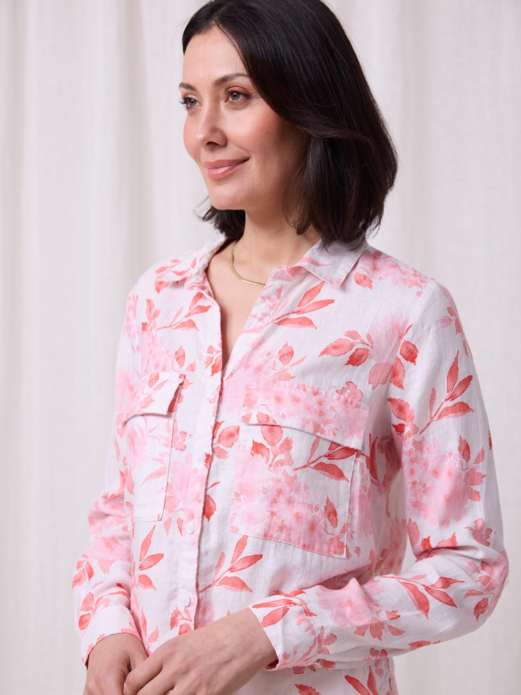 Mønstret skjorte i myk og lett lin. Skjorten har lange ermer med knappet mansjett, brystlommer med klaff, og knappestolpe i front. Rett passform