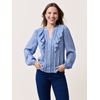 Bluse med feminine detaljer i viskose og resirkulert polyesterblanding med lett struktur. Blusen har liten pufferm med elastikk nederst, v utringing med rysjekant og hullbånd langs stolpe i front. Ledig passform.