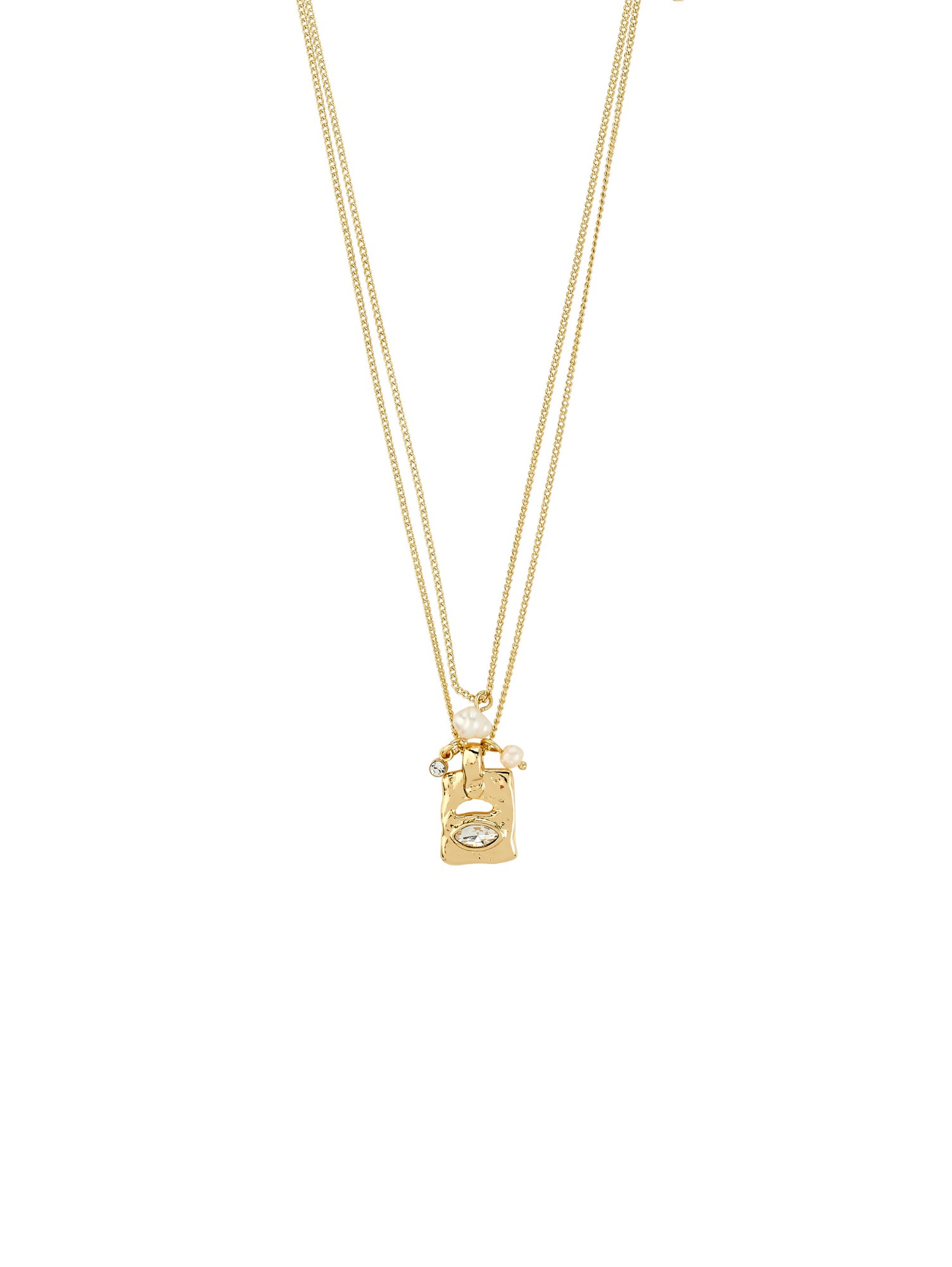 Gullbelagt 2-i-1 smykkesett med ferskvannsperle og krystalldetaljer. Kjedet måler 38 / 40 cm + 9 cm forlenger