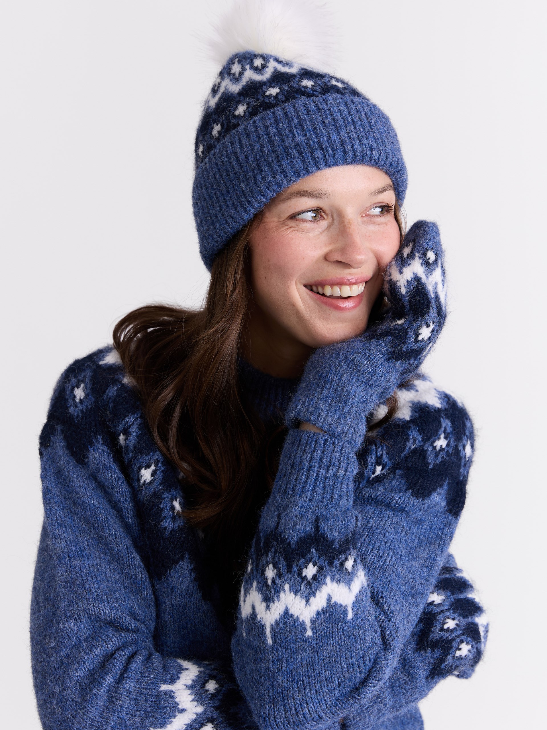 Mønsterstrikket vott i myk kvalitet med innvendig fleecefôr