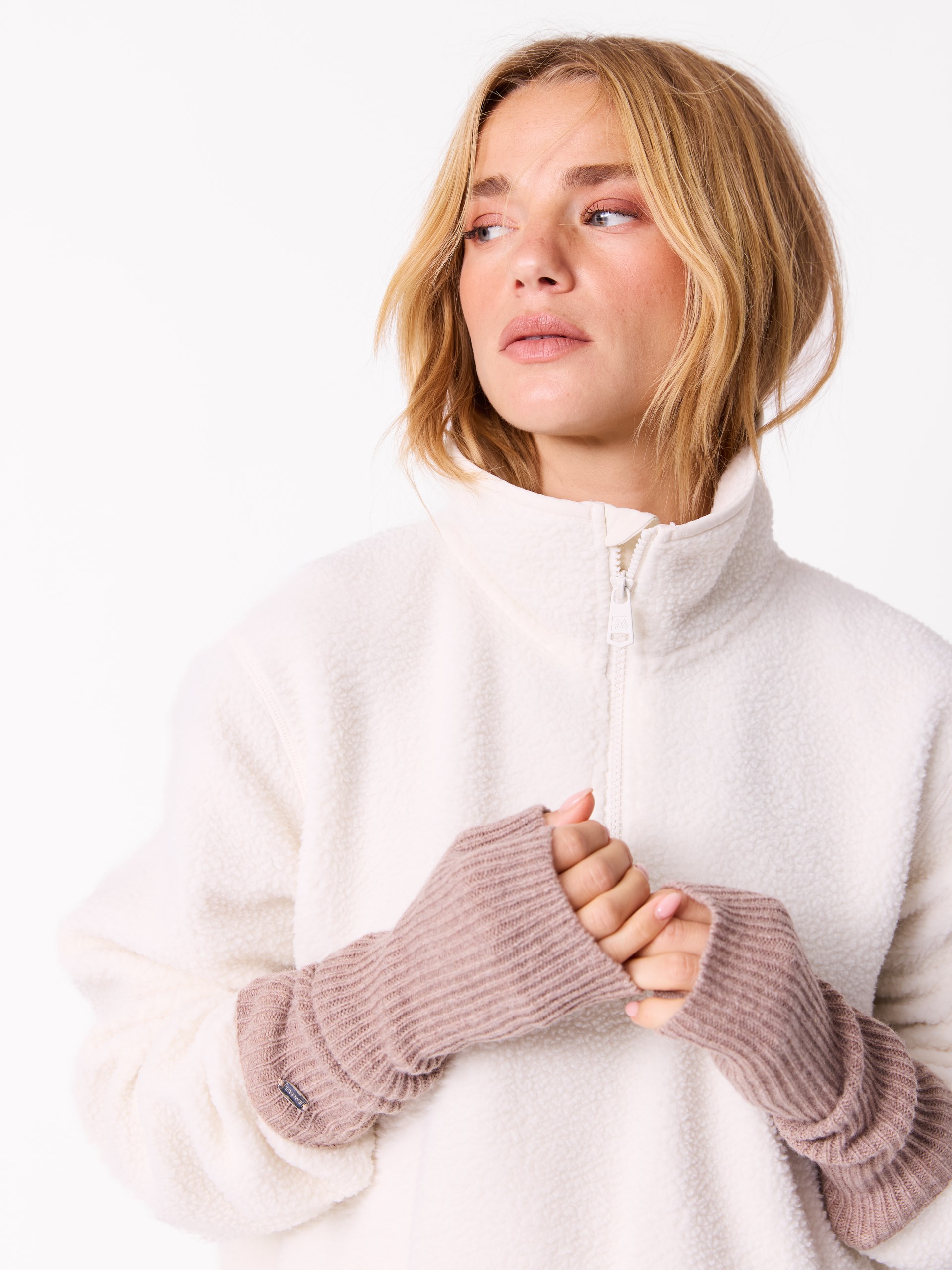 Ribbestrikket pulsvarmer i 100% ull. Pulsvarmeren har en liten logobadge i metall
