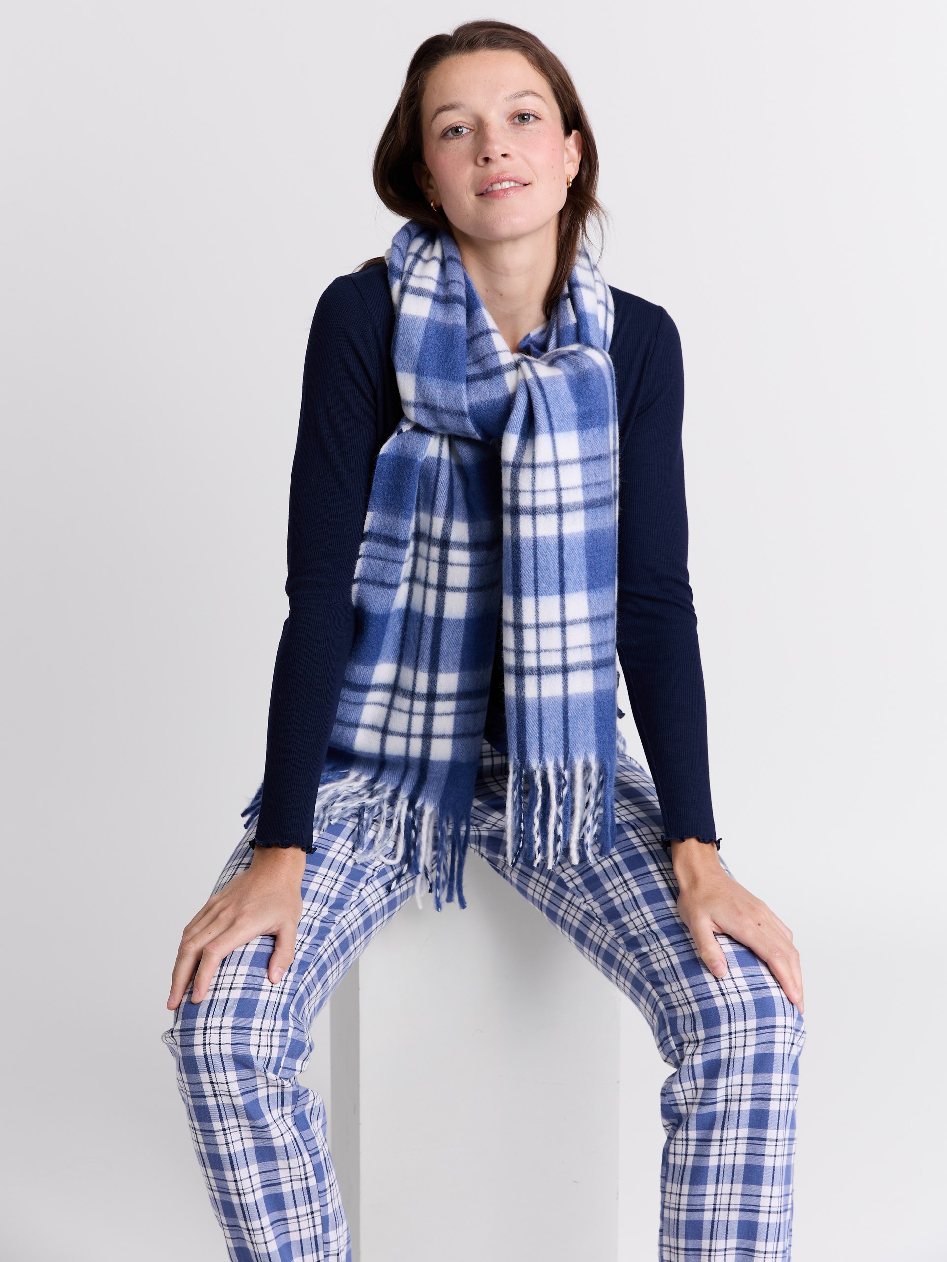 Rutet mykt skjerf med innslag av ull. Skjerfet er 50 cm x 180 cm stort