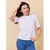 T skjorte i behagelig bomull med stripestruktur. T skjorten har rund hals, kort vid erm med rynker på skulderen og en liten logobadge i metall nede på siden. Ledig passform.