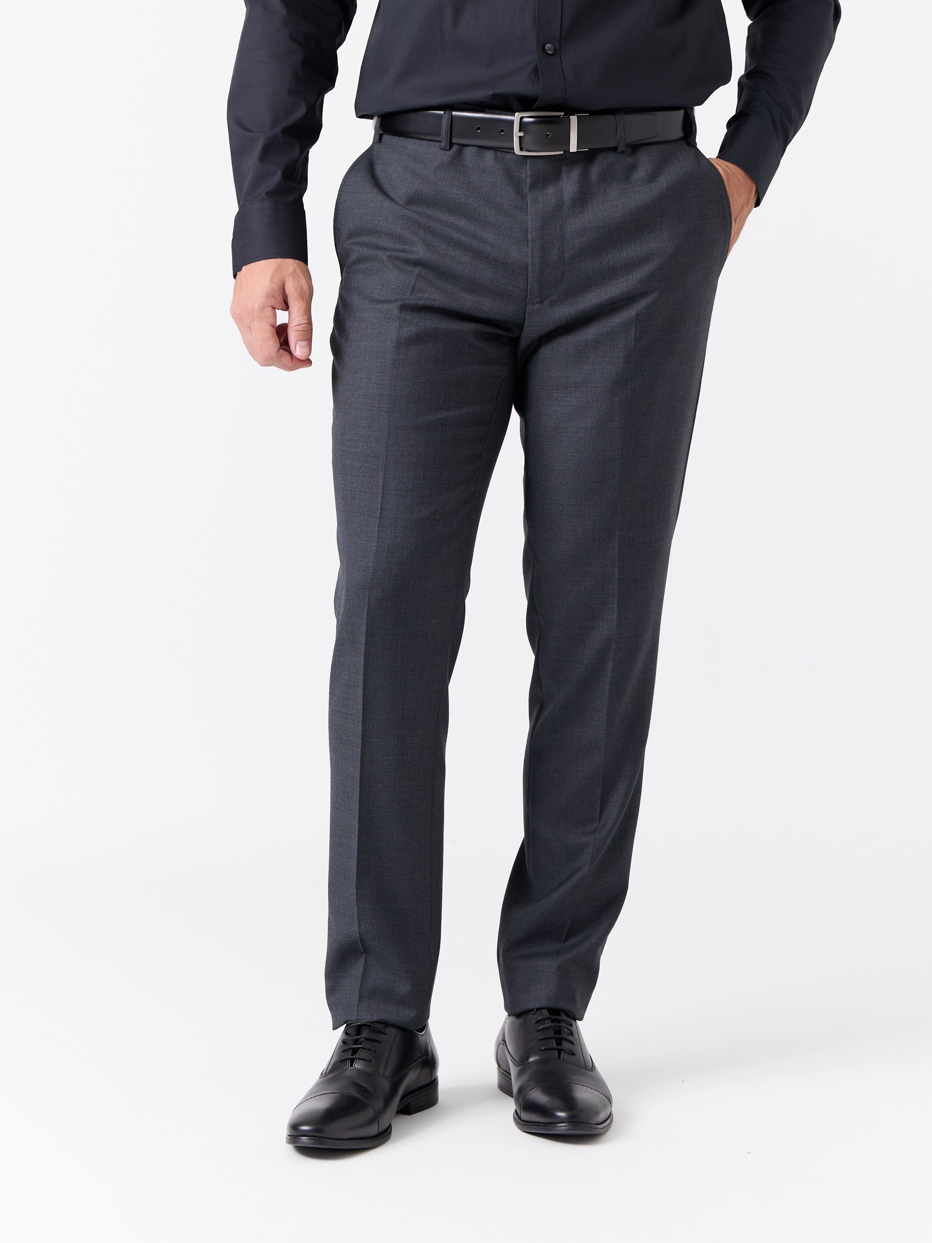 Klassisk dressbukse uten legg. Buksen har paspoilerte baklommer med knapp og slitekant nede. Buksen kommer i mange størrelser og har en anvendelig passform. Velg den størrelsen du normalt bruker. Style med Donato Dario Blazer for komplett Dress. Modellen er 186 cm høy og har på seg størrelse B250.