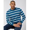 Strikket bomullsgenser med rund hals og striper. Genseren har vevet kontraststoff i nakken, sømdetalj langs vrangbord i front og ett lite ton i ton logo broderi på brystet. 100% bomull. Modellen er 188 cm høy og bruker str L.