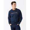 Modellen er 189 cm høy og har på seg str L.Jules collegegenser