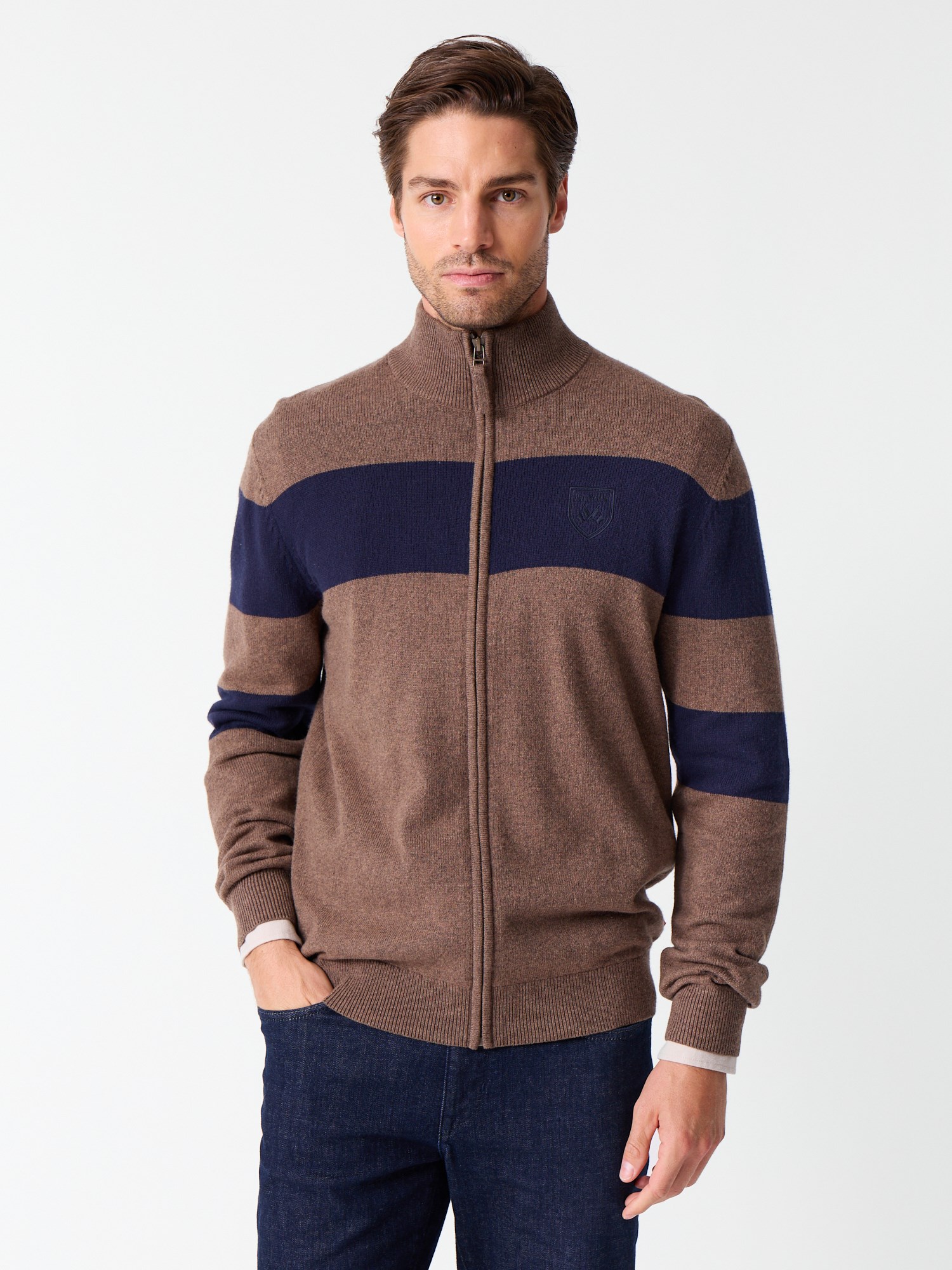 Klassisk bomullsblandet cardigan med glidelåslukning.