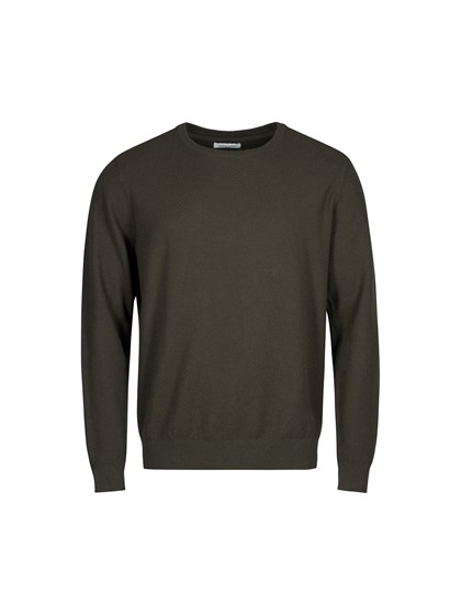 Komfortabel lett genser i myk bomull og ullblandet strukturstrikk. Genseren har rund hals, ribbestrikkede vrangborder og normal passform.