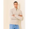 Klassisk kabelstrikket genser i myk bomull med halvhøy glidelåshals. Genseren har lang erm, ton i ton brodert logo på brystet og ribbestrikkede vrangborder. Modellen er 185 cm høy og har på seg str L.