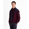 Genser med ton i ton mønsterstrikk og halvhøy glidelåskrage samt ribbestrikkede vrangborder.