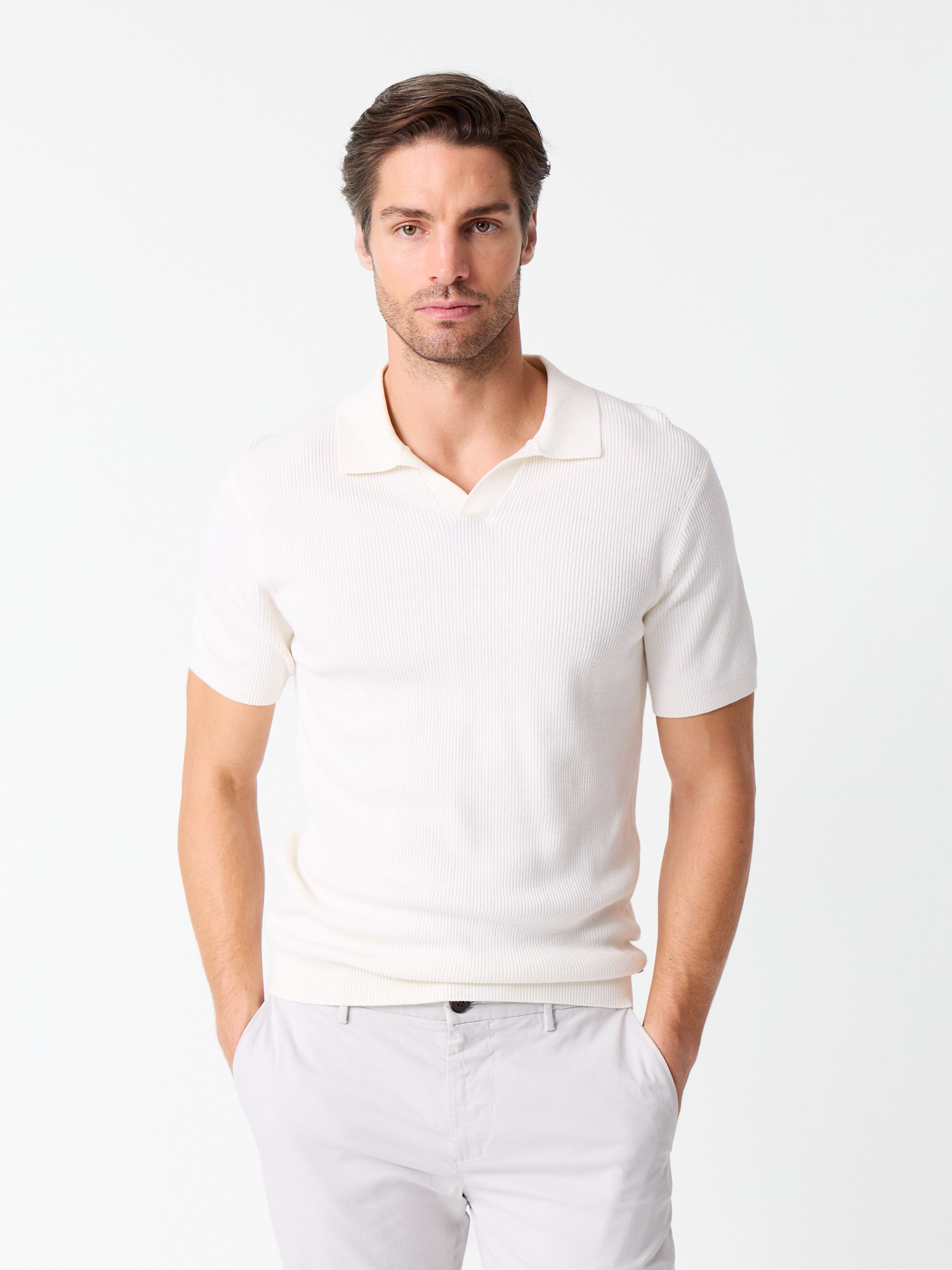 Modellen er 189 cm høy og har på seg str LPatrick polo genser