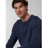 Ensfarget genser i ren 100% bomull med lekker struktur og ribbestrikket rund hals. Den finstrikkede genseren har liten emaljert logo nede til venstre og ribbestrikkede vrangborder. Modellen er 187 cm høy og buker str L.